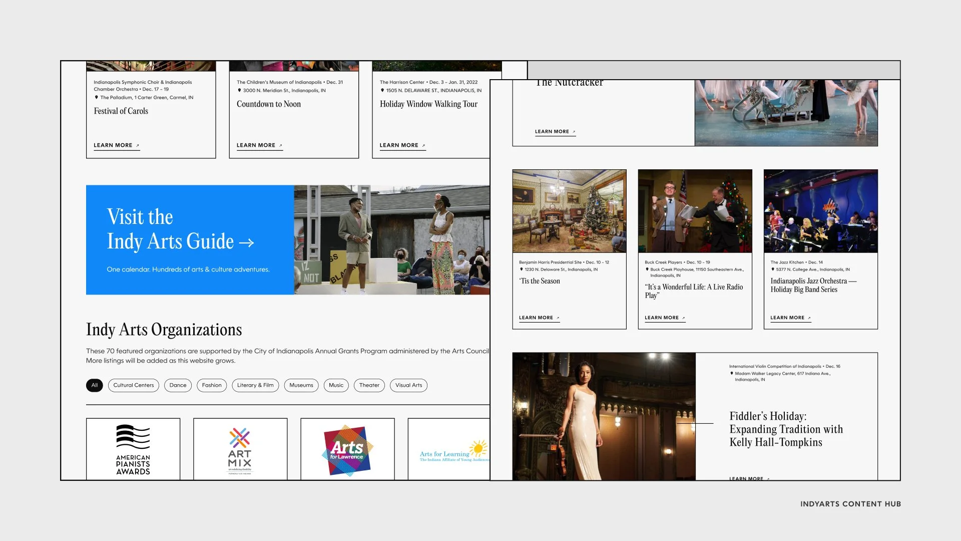 Despite being a hub of collaboration for artists and the Indianapolis community, The Arts Council of Indianapolis failed to have a consistent identity. The visuals and language contradicted each other, creating a confusing message for audiences. Even the name was a tongue twister — making way for the new, IndyArts brand.